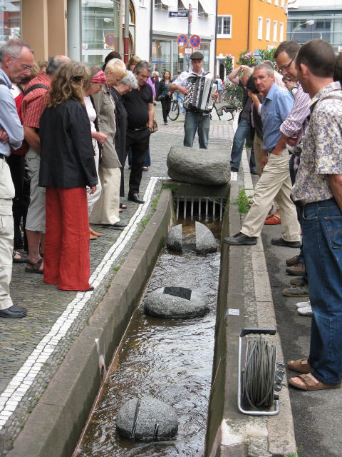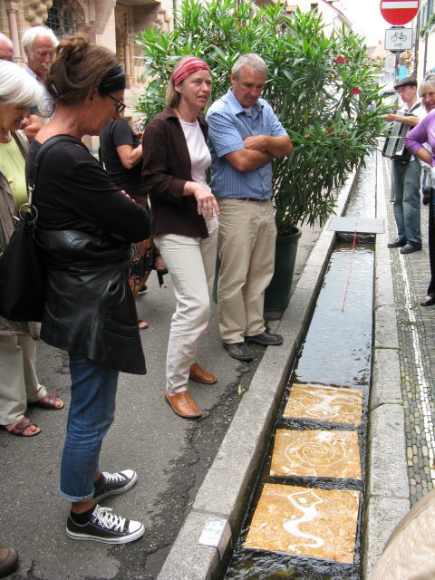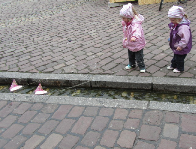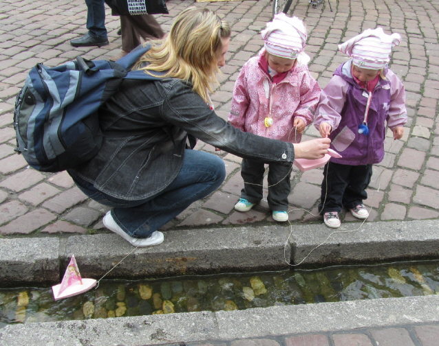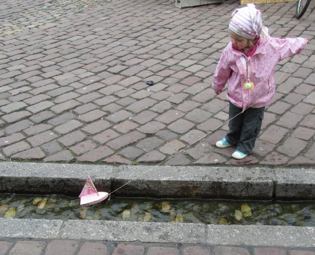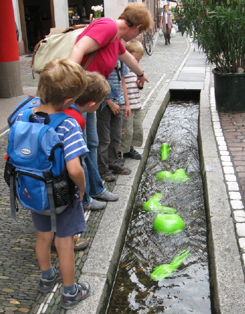 Schiffchen fahren lassen am Bächle beim Rathaus
