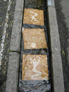 Die drei Platten schwimmen auf dem Wasser - zur Verblüffung vieler Passanten, die dann auch prompt nachschauen (nicht nur die Kinder): Auf der Unterseite ist Styrophor aufgeklebt. .