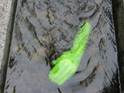 Der grüne Schwimmer von Walter Bausenhart wirft viele Fragen auf - nicht nur bei Kindern: Warum hält er gegen die Strömung an? So knall-grün? Fünf Teile? Billige Plastik?