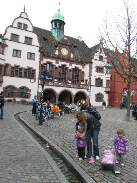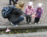 Bächle am Rathausplatz am 26.3.2011: Ganz alleine Bächle am Rathausplatz am 26.3.2011: Zwillingsmädchen mit zwei Booten Bächle am Rathausplatz am 26.3.2011: Schifffahrtspause