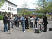 Quellenwanderung am 1.Mai vom Kunzenhof mit Regine Peschers Jugendorchester des MV Littenweiler mit Nikolaus Reinke am 29.4.2006 Jugendorchester - Blick nach Norden im Schulhof des RSS Littenweiler