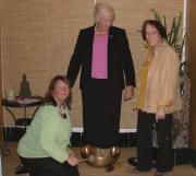 Heike Bastong (links) und ihre Mutter Gudrun (rechts) demonstrieren die Wirkung einer Klangschale - Bild: Gisela Heizler-Ries