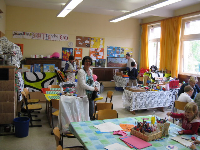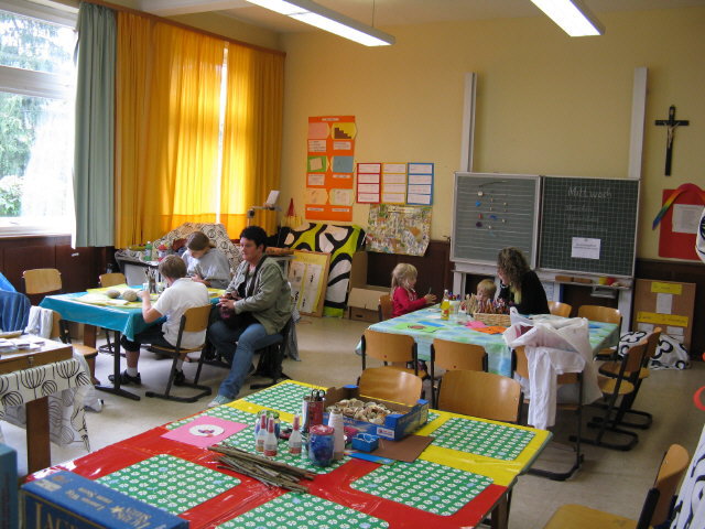 (10) Flohmarkt in der Feyel-Grundschule am 19.7.2009 (11) .. sogar ein Kreuz hängt (noch) im Klassenzimmer Die Mosaikschlange an der Feyel-Grundschule 18.7.2009