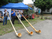 (13) Wuchtachtäler Alphornbläser am Ebneter Dorfhopck 19.7.2009 (14) Lothar Maier aus Bonndorf stellt Alphorn  und Tenorhorn selbst her (15) Alphorn-Rohling