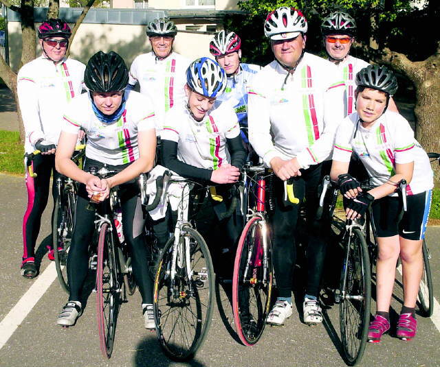 Das Bild zeigt von links nach rechts: Josef Schuler (Hobbyfahrer), Konstantin Hanebeck (U 17-Lizenzrennfahrer), Karl Kotterer (Hobbyfahrer), Julius Giesler (U 17-Lizenzrennfahrer), Johannes Kauz (U 19-Lizenzrennfahrer), Hort Riegger (Trainer), Heinz Wiestler (Hobbyfahrer) Karl Berner (U 15-Rennfahrer). Weiterer U 17-Rennfahrer aus Ebnet ist Jakob Berner.