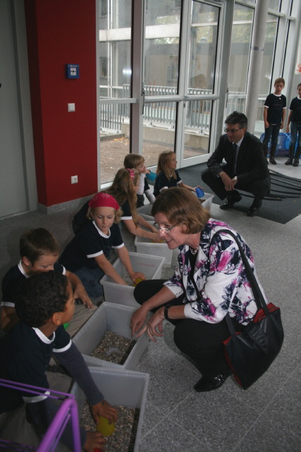 Nach gut einjähriger Bauzeit, konnte am Donnerstag vergangener Woche die neue Feyel-Grunschule in Ebnet offiziell eröffnet werden. „Eins ist sonnenklar, sie ist einfach wunderbar“ sangen die Grundschulkinder zur Begrüßung von Oberbürgermeister Dieter Salomon, Schulbürgermeisterin Gerda Stuchlik und vielen Gemeinderäten, Ortschäftsräten und Vertreter der Ebneter Vereine und am Bau beteiligter Firmen. „Es hat in der heutigen Zeit wahrlich Seltenheitswert, dass eine neue Schule eingeweiht wird“ sagte Schulleiterin Claudia Rössinger voller Dankbarkeit „Auch die Ebneter Bürger sind stolz, eine neue Grundschule zu haben und wir staunen jeden Tag, welche technischen Raffinessen dieses Gebäude bietet. Das Licht geht aus, wenn die Sonne scheint, die Jalousien funktionieren automatisch und sogar die Türen öffnen und schließen sich von alleine – es ist einfach toll.“  Schulbürgermeisterin Gerda Stuchlik nannte es bei ihrem Rundgang durch die neuen Räume gar „eine Revolution, wenn man die alte Feyel-Schule gekannt hat“.