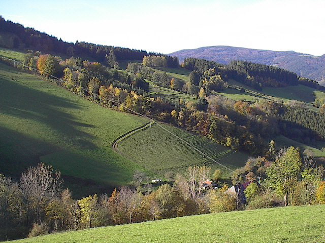 Blick über den Oberhof nach Süden im Weilersbach am 27.10.2005 mehr