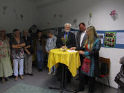 Salzladen am 27.5.2011: Pfarrerin, Pfarrer und Vorsitzender Salzladen am 27.5.2011: Gelbe Rosen