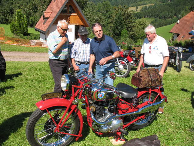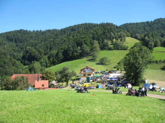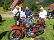 "Oh, die mien aber a’zoge werre!" , ein schneller Griff und Manni hält den passenden Schraubenschlüssel in der Hand, zieht fest, was locker saß. Vorfreude und Spannung auf das Treffen der "Motorradfreunde Eschbachtal" , das vom 3. bis 5. August auf der Zipfeljockenhöhe in Stegen-Eschbach stattfinde (der Weg ist beschildert), sind ihm anzumerken.