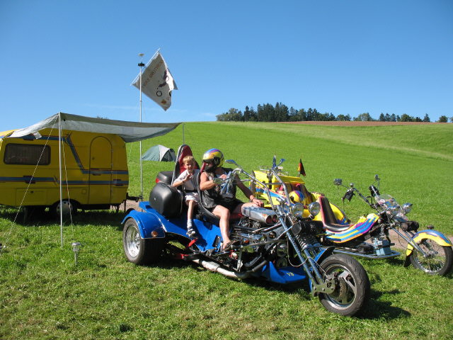 Die beiden Trikes sowie Wohnwagen von Manni Siegel am 5.8.2007