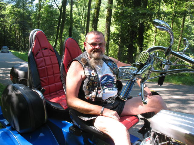 Blick nach Südwestenzur  Zipfeljockhöhe mit Trike 75 PS VW-Motor von Funken-Manni am 5.8.2007 Funken-Manni im Scherlenzendobel mit 240 PS aus 5 Ltr 8 Zylinder am 5.8.2007