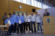 Erfolgreiche Ringer des SV Eschbach wurden geehrt Von links nach rechts: Ortsvorsteher Bernhard Schuler, Tim Scherer, Adrian Herth, Jugendtrainer Thomas Vögtle, Manuel Läufer, Jugend-Co-Trainer Peter Schenk, Mario Läufer, Trainer Hans Kretschmann, Fabio Tascillo, Bürgermeister Siegfried Kuster