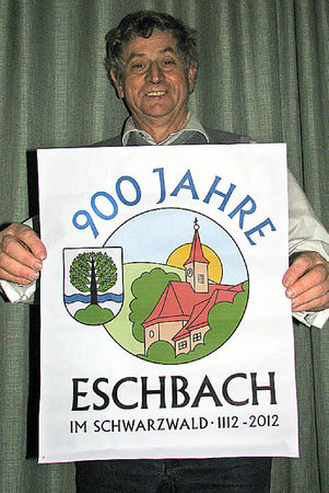 Esdhbachs Ortsvorsteher Bernhard Schuler mit dem Logo der 900-Jahr-Feier. Foto: Monika Rombach