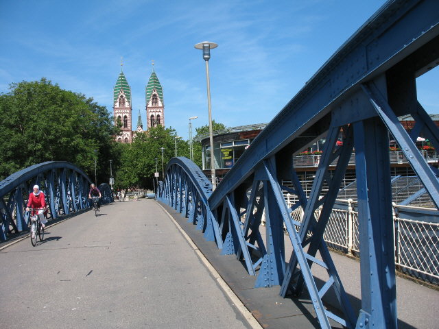 Blick nach Westen von der Blauen Brücke zu Mobile und Stühlinger Kirche am 1.8.2007 Blick nach Westen von der Blauen Brücke zu Mobile und Stühlinger Kirche am 1.8.2007 Blick nach Westen von der Blauen Brücke zu Mobile und Stühlinger Kirche am 19.9.2011