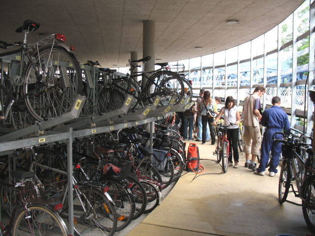 Das Mobile die Fahrradstation und Mobilitätszentrale am Freiburger Hauptbahnhof besteht aus zwei Ebenen. In der unteren Etage finden Sie ein Parkdeck, welches Platz für 1000 Fahrräder bietet. Genauso werden dort zahlreiche Verleihobjekte wie z.B. Fahrräder, auch mit Kindersitz oder Anhänger, Tandem und Fahrradtransporttaschen für Sie bereitgestellt.