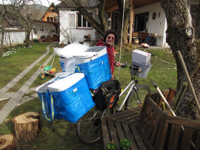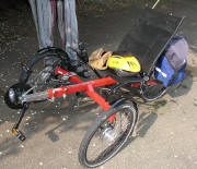 Fahrradtransport am 4.3.2010: Vier Mülleimer und eine Kaffeemaschine 14.6.2010 - zwei Fahrrad-Dreiräder