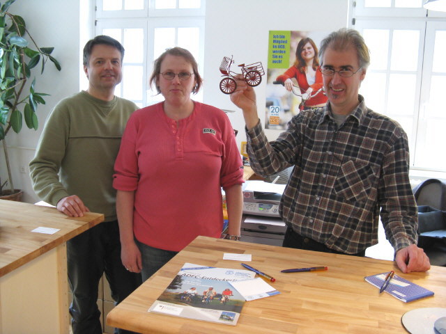 Klaus Burger (ADFC), Anne Ritter (Beratung Fahrrad, Bus und Bahn) und Hannes Linck (VCD) - von links