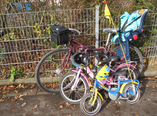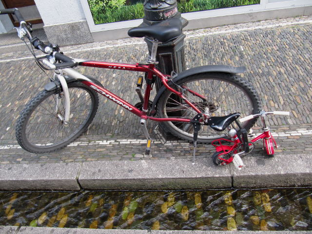 Velo groß und Velo klein am Bächle - beide gut abgeschlossen am 12.9.2009 Fahrrad-Trio am 14.11.2009