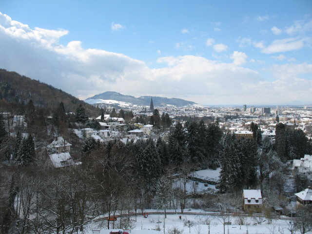 Blick nach Norden vom Lorettoberg zu Münster, Schwabentor und Schloßberg am 15.1.2008