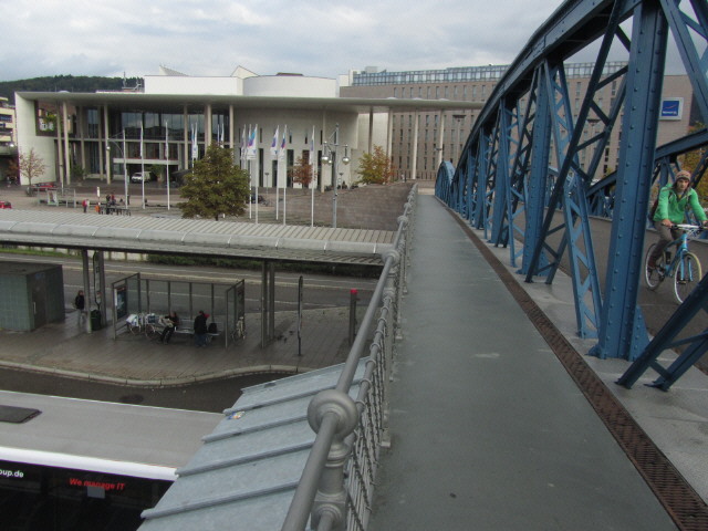 19.9.2011: Blick nach Osten auf der Blauen Brücke zum Kongresszentrum und Novotel (rechts)