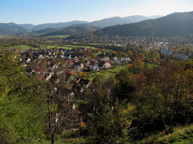 Tele-Blick vom Scheibenberg nach Osten über Ebnet am 26.10.2010 - Theodor-Egel-Saal Blick nach Osten zur Bank auf dem Scheibenberg am 26.10.2010