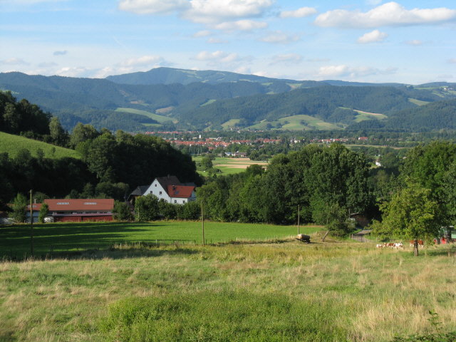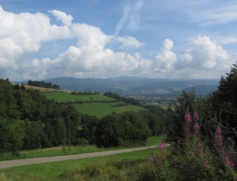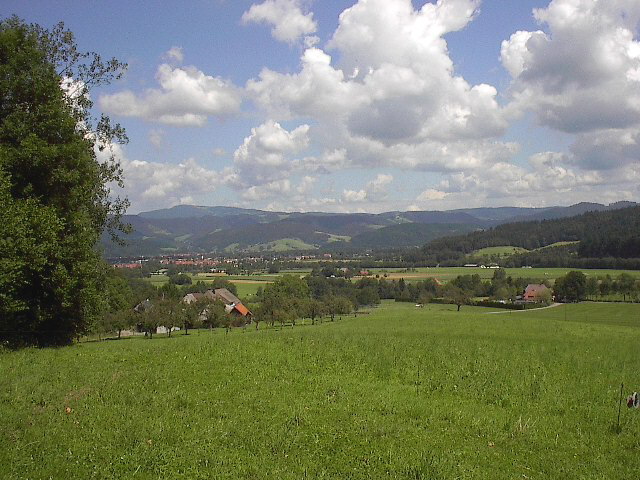 Blick nach Norden vom Bögelsbacher Häusle zur Immi (links) bis Kirchzarten am 28.7.2011