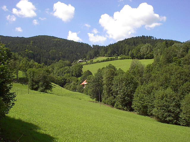 Blick nach Süden hoch zum Bögelsbacher Berghäusle Anfang August 2005 Blick nach Norden vom Bögelsbacher Berghäusle übers Geroldstal ins Dreisamtal