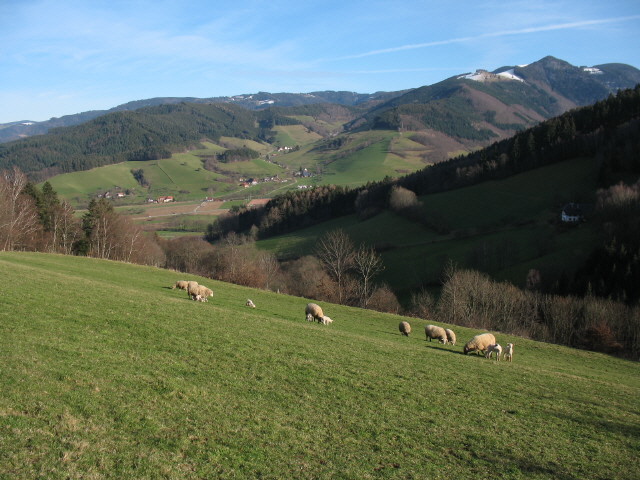 Blick nach Süden ins obere Geroldstal - Fußenhäusle oben und Galihäusle unten. Wie heißen die Höfe? Blick von der Strasse Kirchzarten-Oberried nach Westen über den Küchlehof am 26.2.2006 Blick vom Hannisenhof nach Westen über Gasthaus Schützen zu Geroldstal und Dietenbach (rechts) am 26.2.2006