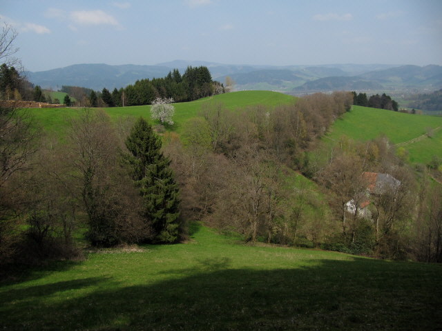 Blick nach Norden  vom Fußenhäusle am 1.5.2009 ins Kirchzartener Becken Blick nach Osten vom Fußenhäusle am 1.5.2009 zum Hinterwaldkopf Blick nach Westen zum Fußenhäusle (links) und Gallihäusle am 23.4.2011