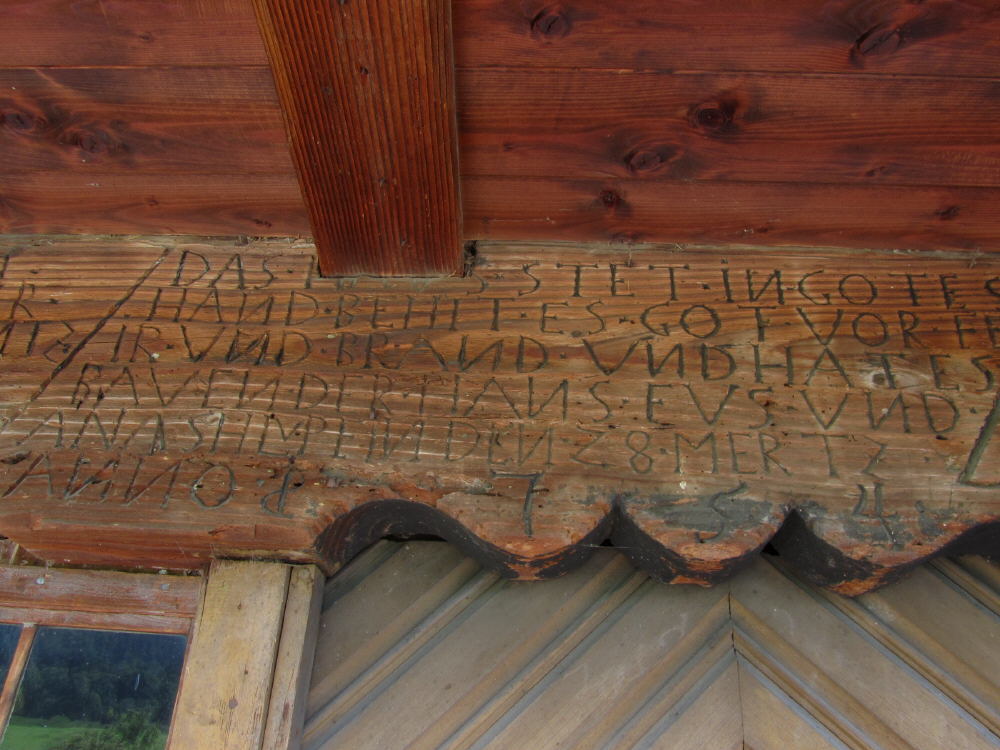Auf dem Weg zum Rappeneck oder Schauinsland, ein Stück abseits des Weges und deswegen wohl nahezu unbekannt, steht mitten im Wald ein kleiner Bildstock, der von einem Unglück beim „Holzmachen" berichtet. Ein großer Baum war 1941 vom Wind entwurzelt und lag quer zwischen den anderen Bäumen. Er mußte zerschnitten werden. Doch die Spannung in der Drehung war so groß, daß der Stamm beim Sägen federte und den Rummlerhofbauern vom Geroldtal so unglücklich und mit solcher Wucht am Kopf traf, daß er noch im Wald starb. Seine Kinder setzten den Bildstock (ren.1990 vom Löwenwirt Helmut Maier), auf dem wir lesen: