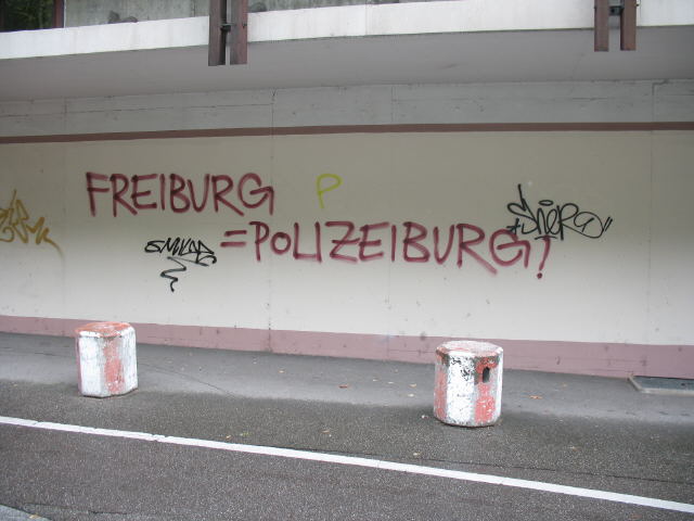 "Sufer isch 's und glatt", behauptete einst Johann Peter Hebel über das äußere Erscheinungsbild der Stadt Freiburg. Mag sein, dass der alemannische Reimeschmied mit seinem Loblied auf die Reinlichkeit Freiburgs zu seiner Zeit Recht hatte. Aber nur relativ. Denn es ist zu vermuten, dass vor 200 Jahren auf dem Kopfsteinpflaster in den Gässle zwischen den Bächle weit mehr Pferdeäpfel dampften als heute. Andererseits wäre eine Hymne auf Freiburgs sauberes Stadtbild heutzutage verlogen. Auch wieder relativ. Im Städtevergleich. Vergleichen wir also: Wer vor 30 Jahren von Freiburg nach Sizilien oder Andalusien reiste, staunte nicht schlecht über den Unrat in den Gassen und die Pinselparolen auf maroden Fassaden. Heute ist's umgekehrt. Wer nun aus der Partnerstadt Granada, einer der bedeutendsten Universitätsstädte Spaniens, nach Freiburg heimkehrt, ist immer wieder entsetzt über die von Plakatfetzen und Wandschmierereien verunzierten Häuser, Vorgartenpfeiler oder Verteilerkästen. Über Schmierwerke, die den beschönigenden Namen Graffiti nicht verdienen, da sie nichts anderes sind als hastig versprühte Reviermarkierungen. Auch im Vergleich zu anderen deutschen Städten wie Heidelberg, Nürnberg oder Augsburg wirkt das angeblich so "sufere" Freiburg heruntergekommen. Warum nun diese Stadt einen schäbigeren Kittel trägt als andere? Vielleicht liegt's daran, dass man hier etwas länger als andernorts Nachsicht übte. In der Meinung, dass wildes Plakatieren und nächtliches Schmieren als imagefördernder Ausdruck "mediterranen" Lebensgefühls und jugendlicher Subkultur gewertet werden sollten.