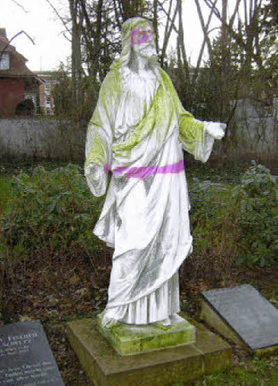 Graffiti an der renovierten Weiherhofschule Beschädigte Christusfigur vor der Erlöserkirche