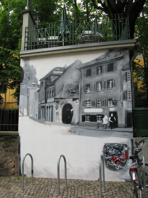 Die Gerberau-Ansicht am Feierling-Garten am 14.5.2009 Gerberau-Ansicht am Feierling-Garten  26.6.2009 - nur die Fahrräder sind echt!