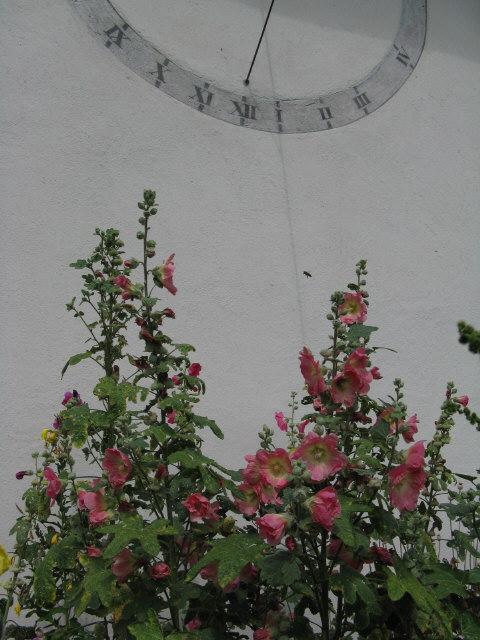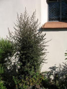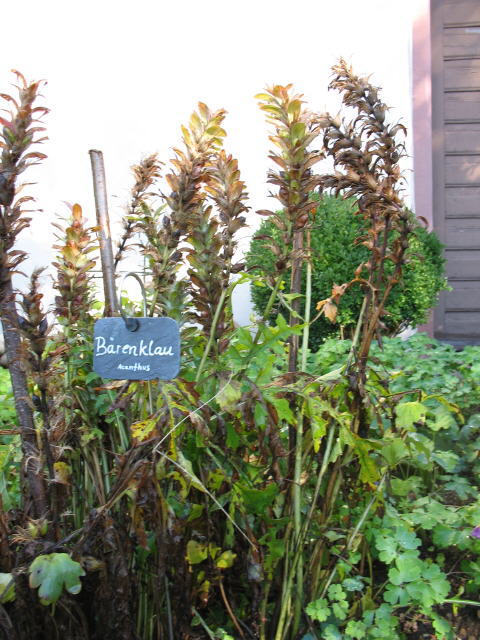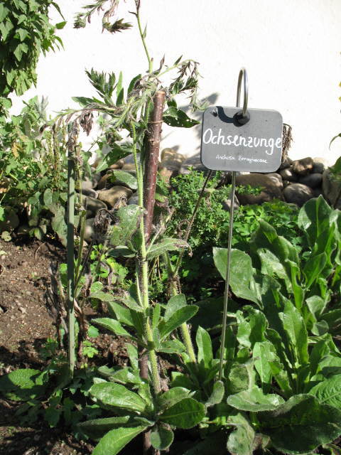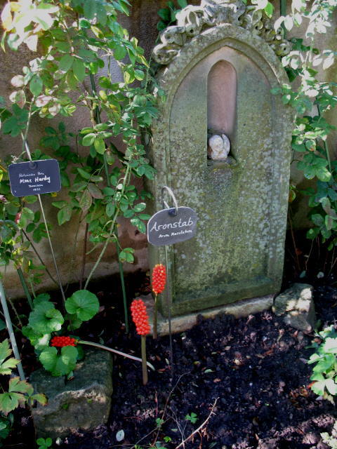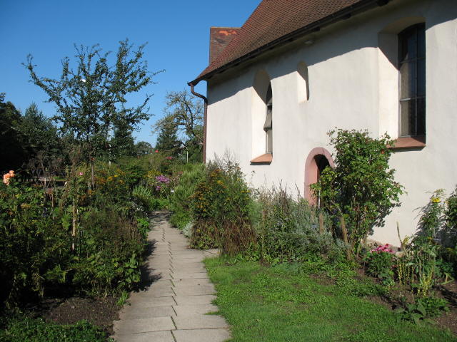 Blick nach Westen über den Kräutergarten bei der Johanneskapelle am 31.8.2006 Aronstab an der Kirchenmauer