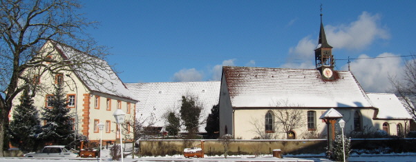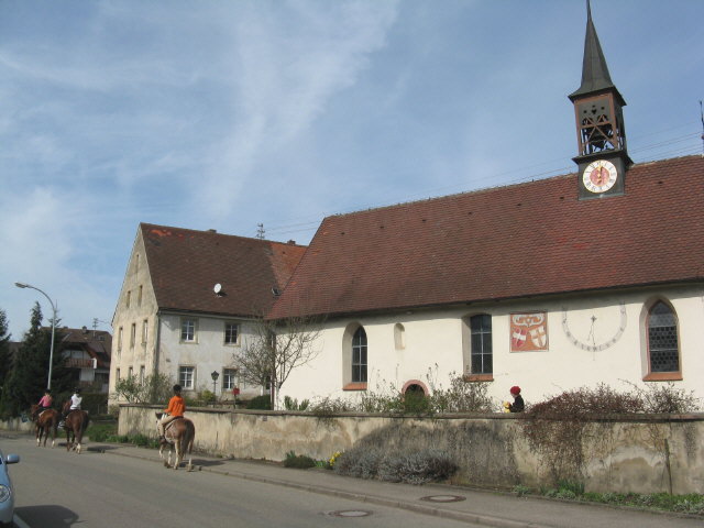 Blick nach Norden zur Johannneskapelle in Zarten am 2.1.2009 - links der Ruhenhof