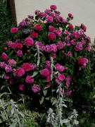 Blick nach Nordwesten am 30.5.2009 zur  Johanneskapelle: Rote und weiße Rosen Charles des Milles - Historische Rose am 30.5.2009 an der Johanneskapelle Charles des Milles - Historische Rose am 30.5.2009 an der Johanneskapelle