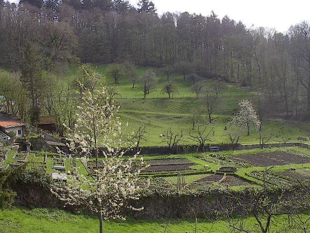 Blick nach Osten über den Bauerngarten der Kartaus im April 2005 Blick nach Norden zur Kartaus