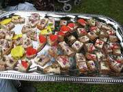 Eßbare Blüten - die Gourmetküche von Ursula Bertsch am 12.7.2007 Brötchen mit eßbaren Blüten - Nachtkerze gelb, Boretsch blau, Malve lila und orangegelb Ringelblume