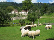Kartaus am 27.7.2011: Blick nach Norden zu den Schafen - Solarstrom für den Zaun