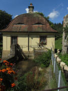 Blick nach Süden über den Garten hinter der Kartaus zur Kirche am 2.4.2010 Am Kartausbach 24.7.2010: "Pinkeln hoch 3"