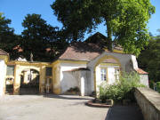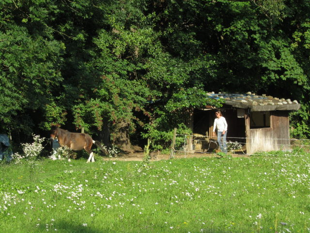 Kartaus am 16.4.2011: Seiteneingang zum hinteren Garten - Obstbaum blüht Kartaus am 27.7.2011: Blick nach Osten zu den Pferden