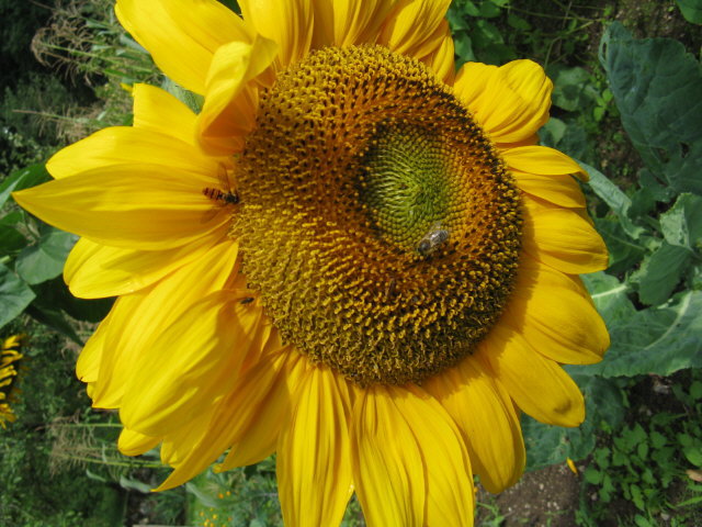 Sonnenblume mit Bienen im Kartausgarten am 28.8.2010 gelb - grün - blau Stechapfel (links) mitsamt Blüte (rechts) im Kartausgarten am 28.8.2010