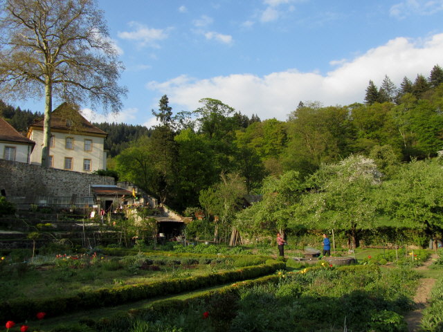 Bis in die 70er Jahre versorgte dieser über 2000 qm große Garten die Kartaus mit Gemüse. Seit 1995 wird er von der Familie Schüle liebevoll und mit großer Mühe bewirtschaftet. Hier wird nicht getrennt zwischen Obstgarten, Gemüsegarten und Blumenbeeten - eine Augenweide, wie alles harmoniert und zusammenpaßt. Hier wird ökologische Landwirtschaft betrieben. Kaum vorstellbar, wieviel Arbeit im Unterhalt eines so großen Nutzgartens steckt. Ein besonderer Dank gilt Frau Eva-Maria Schüle.