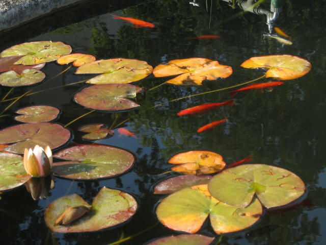 Kartausgarten am 27.7.2011: Schafe am Kompost Kartausgarten am 27.7.2011: Blick nach Osten Kartausgarten am 27.7.2011: Fische und Seerose