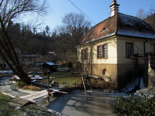Kartaus am 5.2.2012: Wasserschlössle Kartaus am 5.2.2012: Dickes Eis am Wasserschlössle bei -12 Grad mittags Kartaus am 5.2.2012: Blick nach Osten zum Sägerhaus