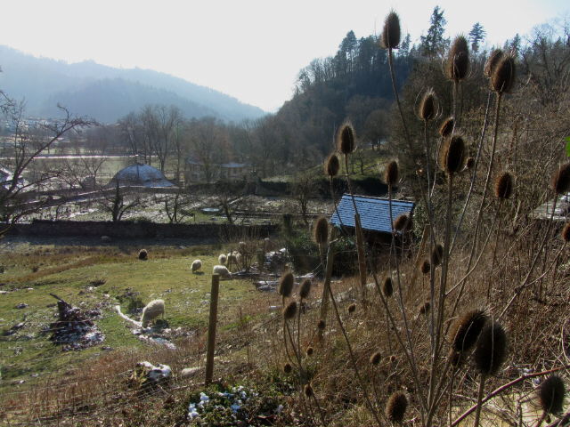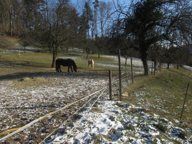 Kartaus am 5.2.2012: Blick nach Südwesten zu den Schafen (Rasenmähern) Kartaus am 5.2.2012: Spielmobil bei -12 Grad Kartaus am 5.2.2012: Der schöne Innenhof