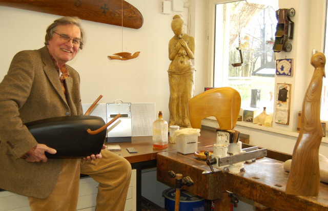 Kirchzarten (glü.) Wer sich von Rolf Baum durch sein großräumiges Wohn- und Atelierhaus am Hohrain 1 in Kirchzarten führen lässt, gewinnt schnell den Eindruck, im „Zuhause“ eines Kunstliebhabers zu sein. Und das gibt der 77-jährige ehemalige Industriedesigner auch gerne zu: „Das Meiste, was Sie hier sehen, habe ich selbst geschaffen!“ Dabei leuchten seine Augen und man nimmt ihm gerne ab, wenn er zugibt: „Die Kunst ist mein Lebensinhalt!“