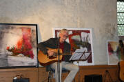 Harald Riesterer spielte und sang auf der Matinee vor Bildern von Ines M. Paegerts Bilderausstellung in Kirchzarten