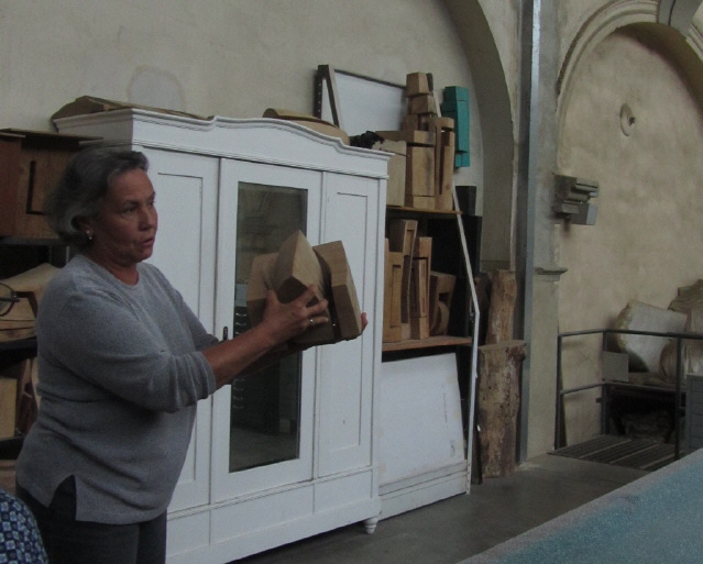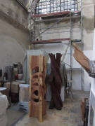E-Werk am 11.8.2011: Herta Seibt de Zinser zeigt Holzobjekte von Jens Reichert
