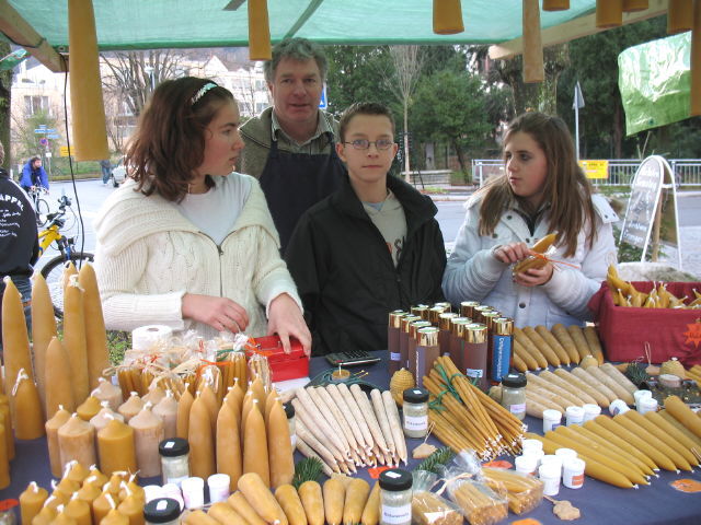 Einstimung auf Weihnachten: Auch in diesem Jahr gab es in und um die kleine ehem. St.Barbarakirche viel zu erleben: Herr Rees (keiner darfs wissen) als echter Nikolaus, viele Stände mit Selbstgemachtem zum Esen, Trinken, Anziehen, Verschenken usw., Musik der Jugendgruppe des Musikvereins Littenweiler, Eselreiten für die Kinder, Kerzen ziehen, ... Und mit viel Einsatz, Mühe und Elan organisiert von Jeane Fünfgeld - hoffentlich nicht zum letzten Mal!
